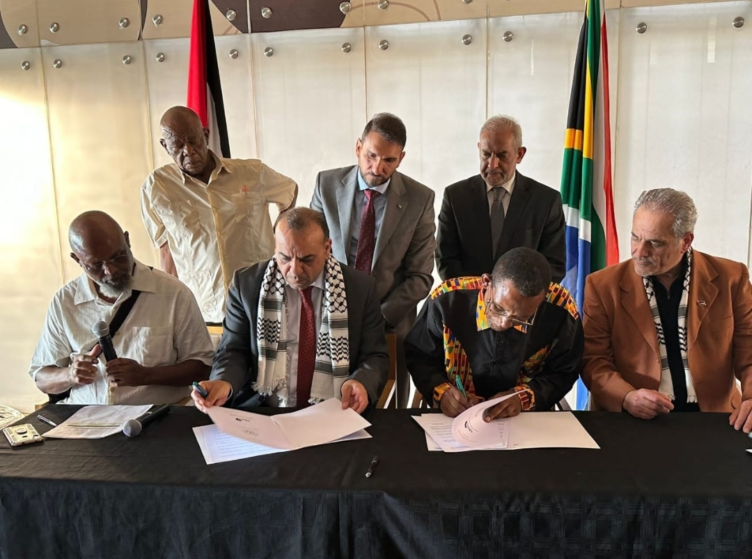 على مبادرتهم بالحضور لتوقيع الاتفاقية في هذا الوقت الصعب الذي تمر به قضية فلسطين ، مؤكداً أن الاحتلال سيرحل وستنال فلسطين حريتها كما نلتها جنوب أفريقيا.